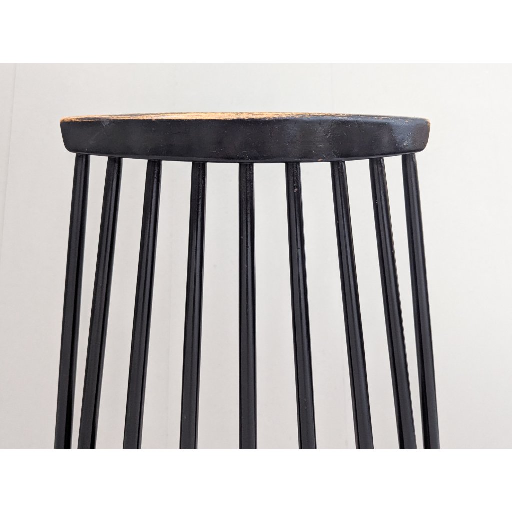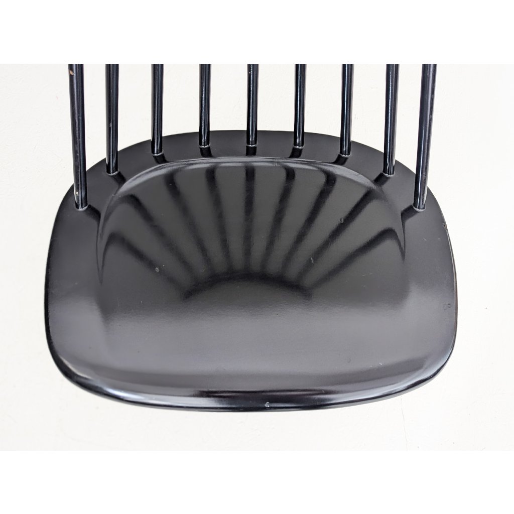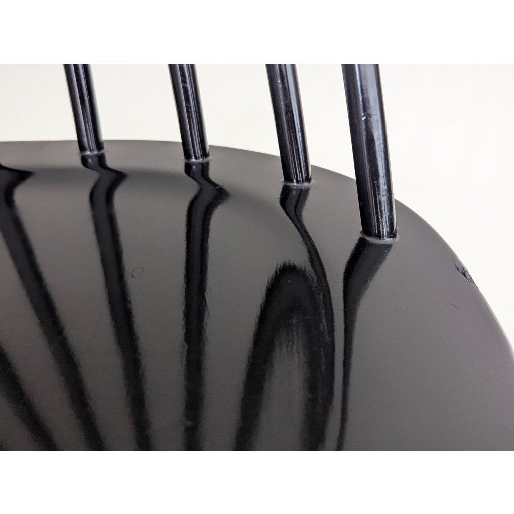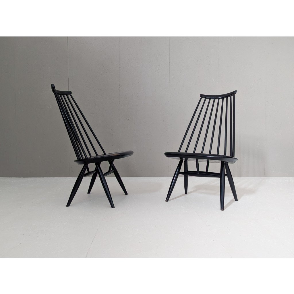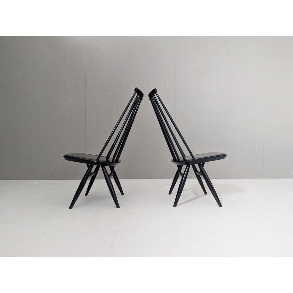Crafted from black lacquered birch, these original early production chairs exemplify Tapiovaara’s mastery of form — with slender tapering spindles, a softly curved backrest, and a gracefully reclined posture that invites relaxation. The light, open structure creates a powerful sculptural silhouette while maintaining strength and comfort.