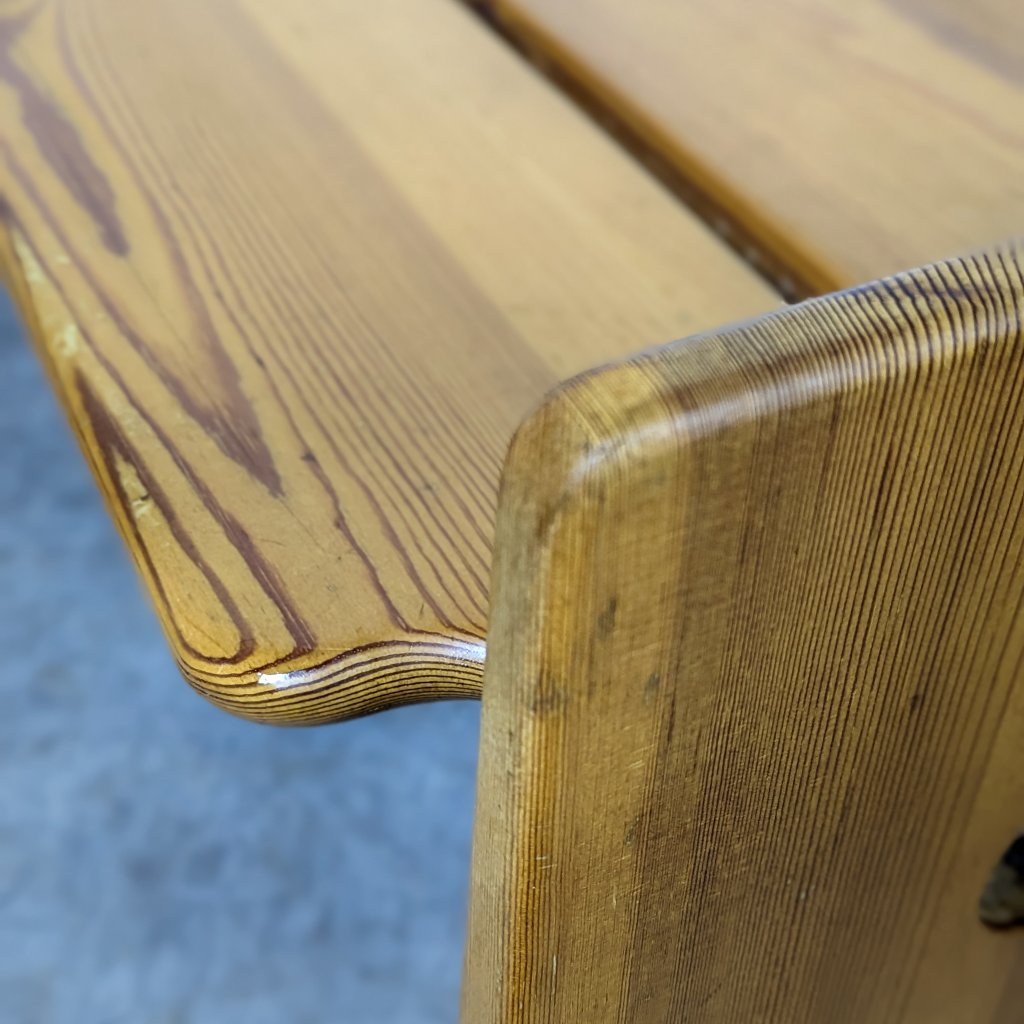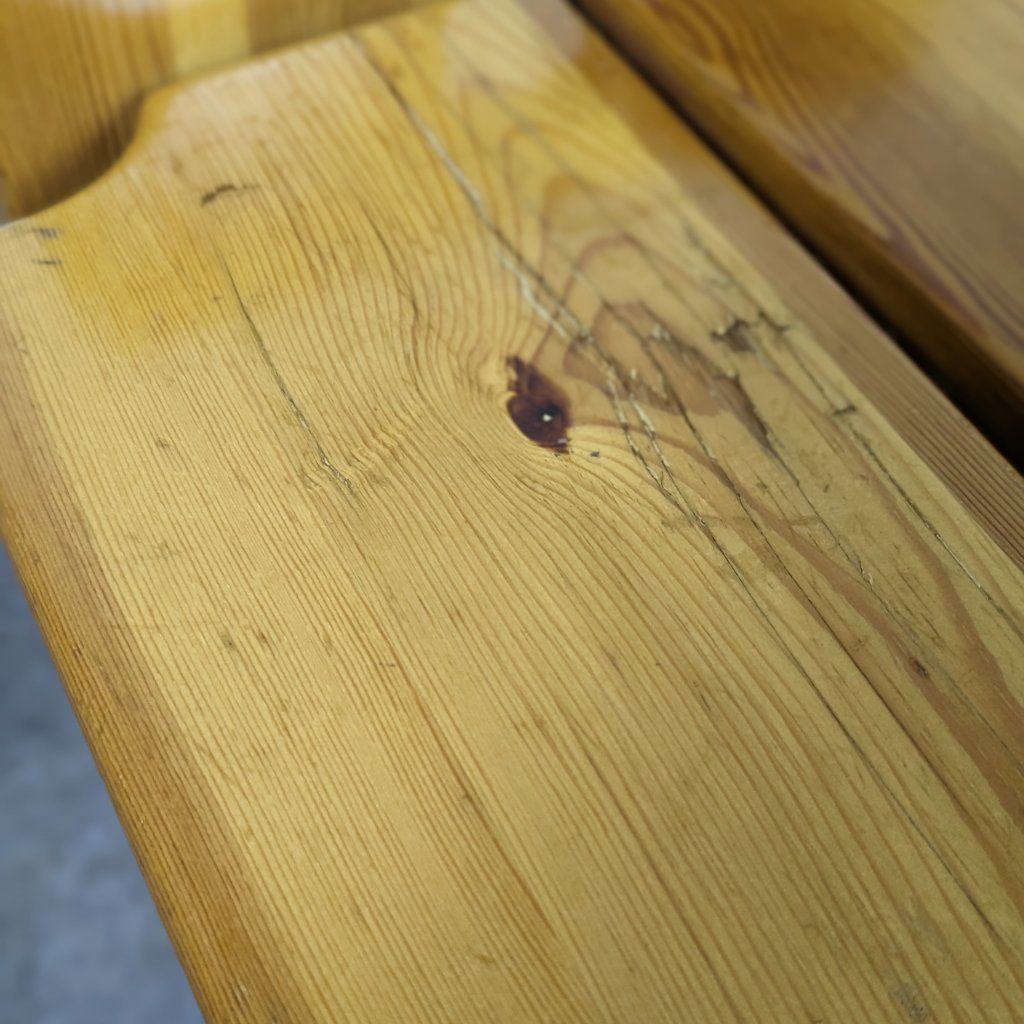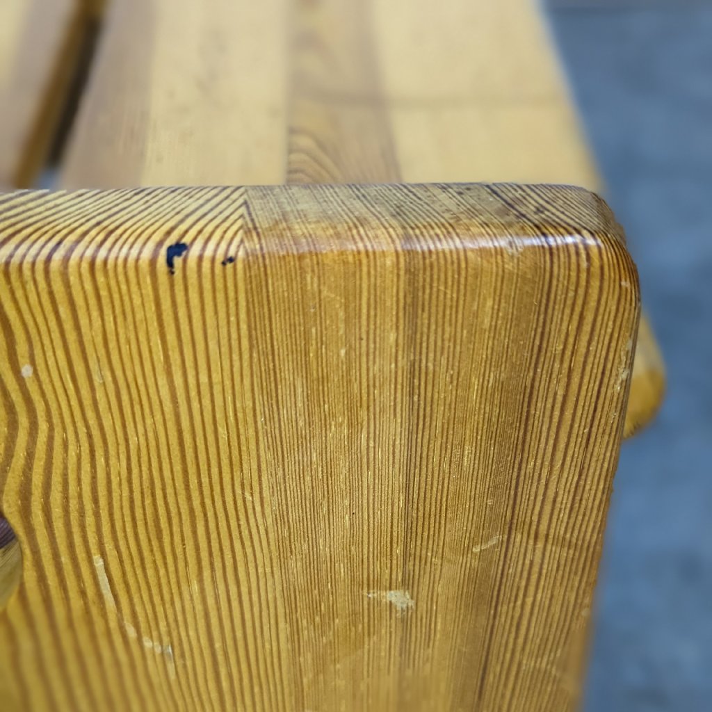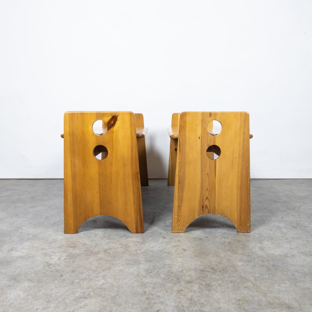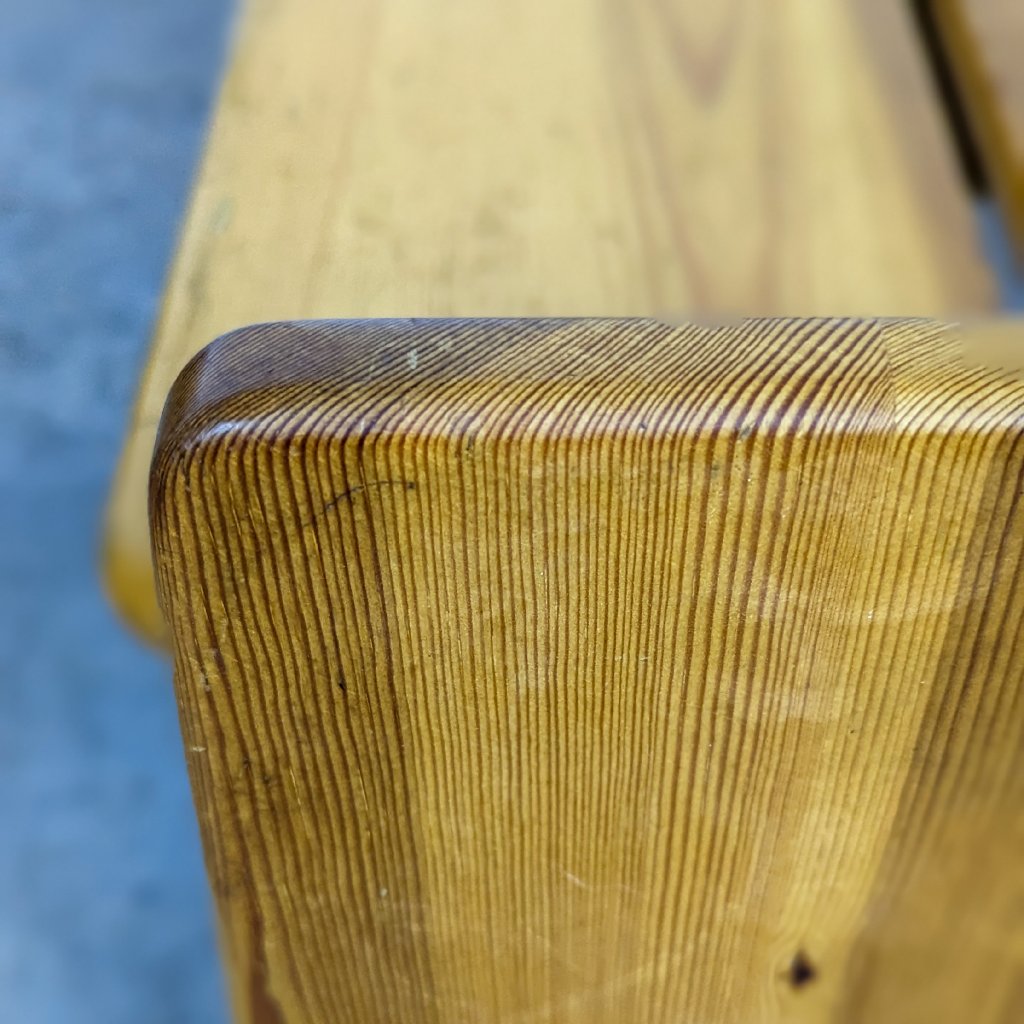 Pair of durable, solid pine wood benches in original condition. Exceptionally sturdy, showcasing impressive Scandinavian craftsmanship. Displaying typical signs of wear and age, yet structurally sound. Length 112 cm, depth 37 cm, seat height 44 cm.