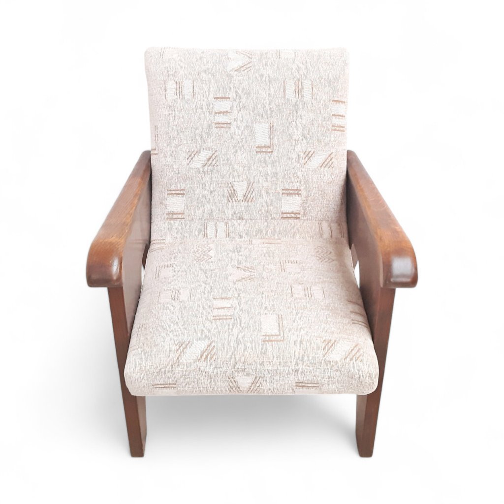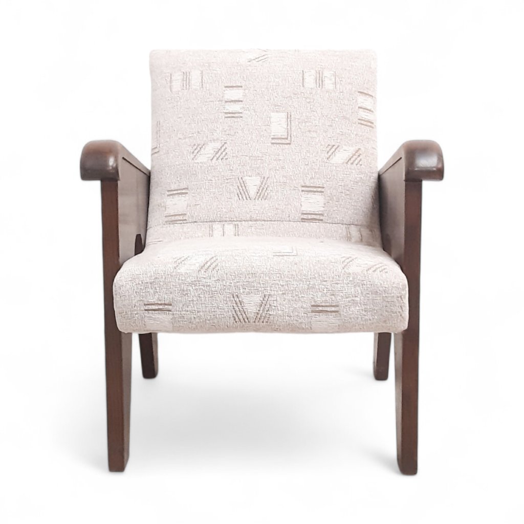 A unique armchair manufactured by UP Závody, the renowned company associated with famous Czech architect Jindřich Halabala, in the late 1940s to early 1950s. The design is attributed to Jan Vaněk. The wooden structure is in good original condition and has been reupholstered. Height 75 cm, depth 78 cm, width 66 cm, seat height 40 cm.