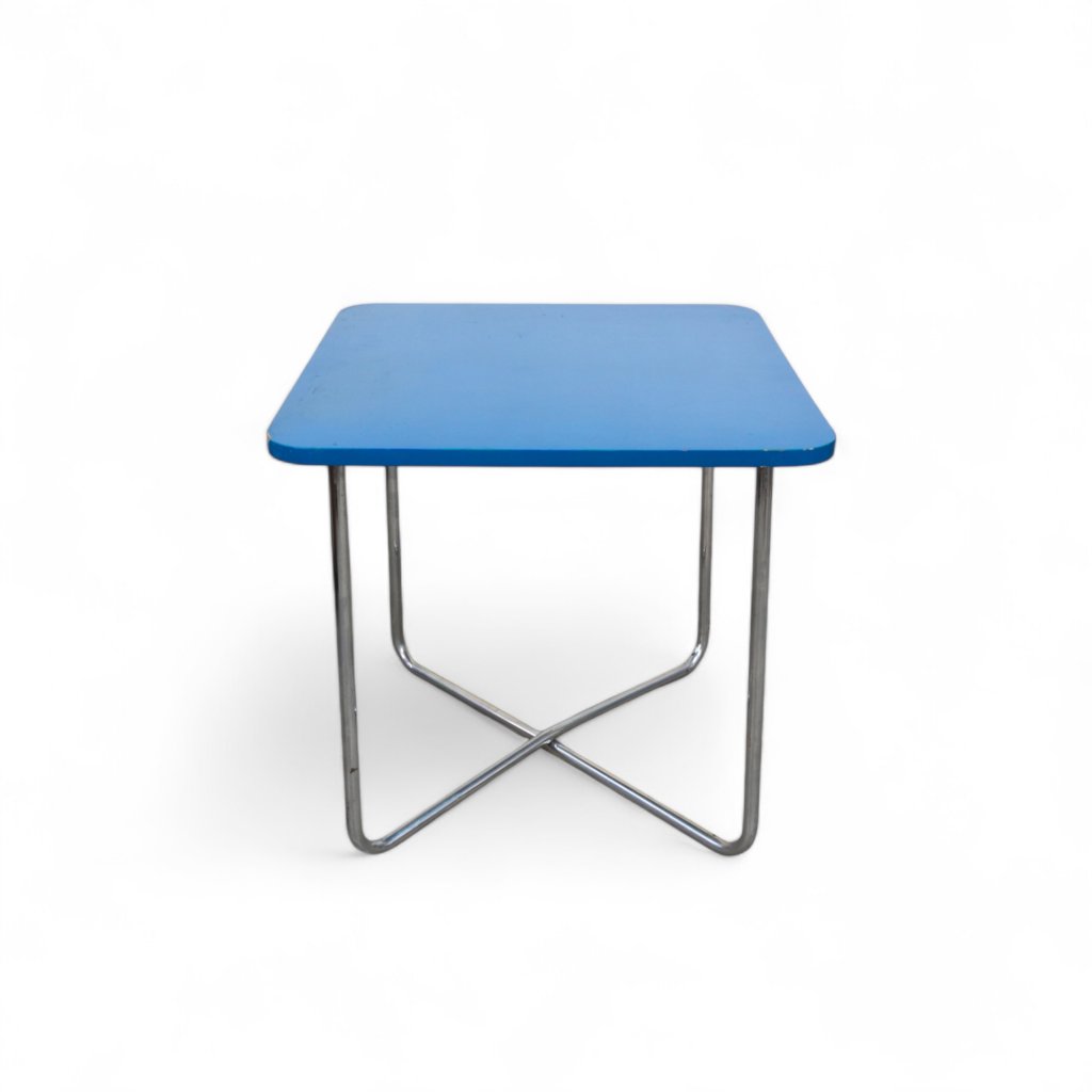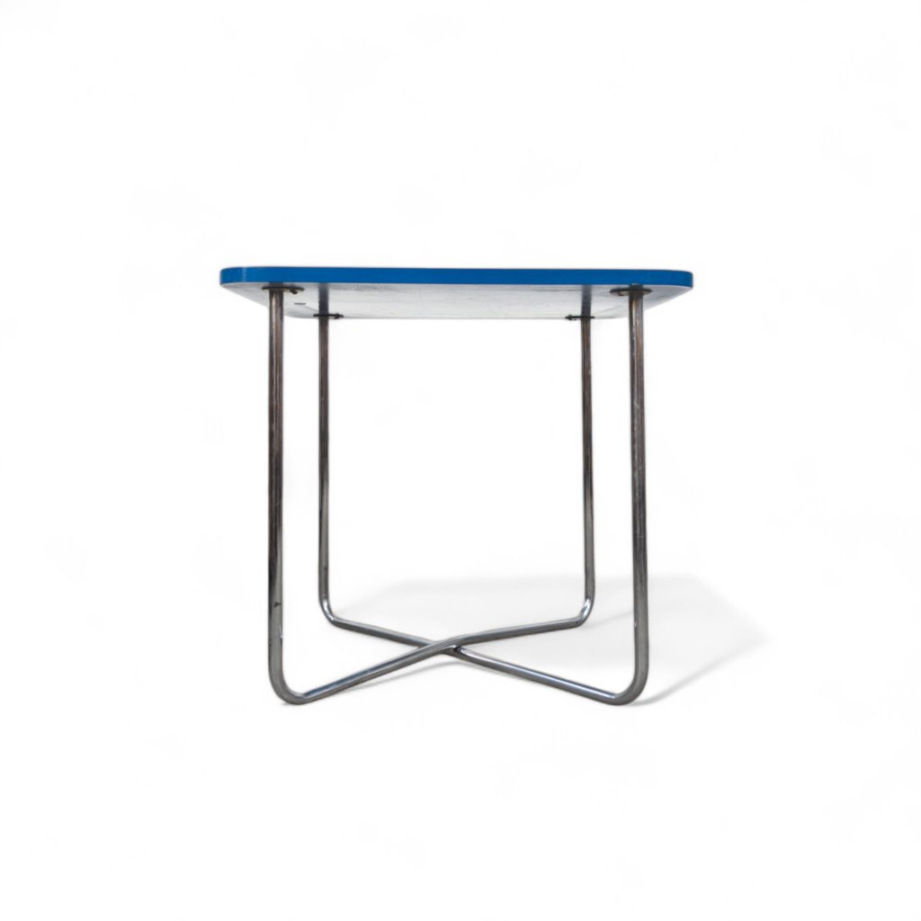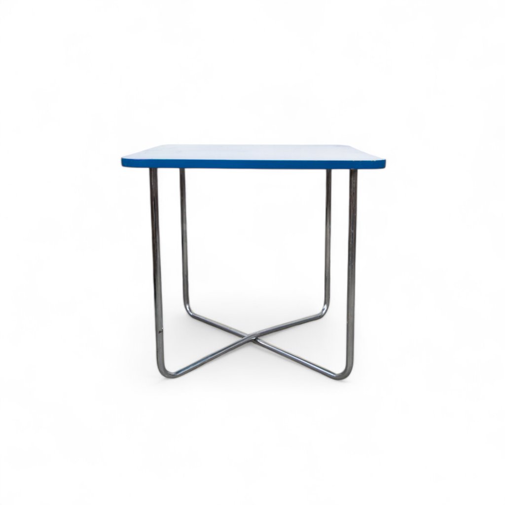 Functionalist tubular steel dining table, manufactured by Vichr & Co. in former Czechoslovakia during the 1930s. Crafted from chrome-plated tubular steel with blue lacquered wooden top, the table is in good original condition, showing some signs of wear and age. Structurally sound.