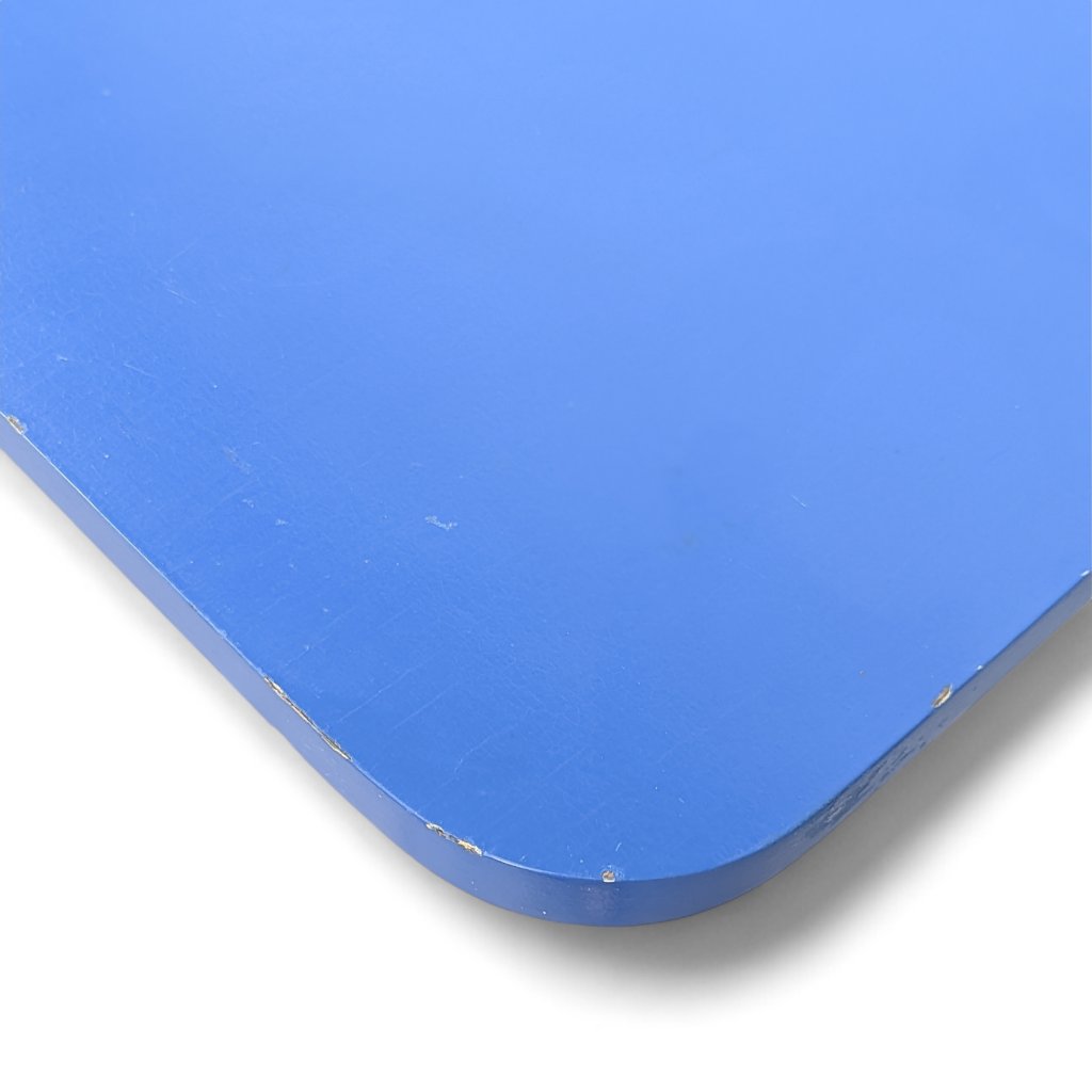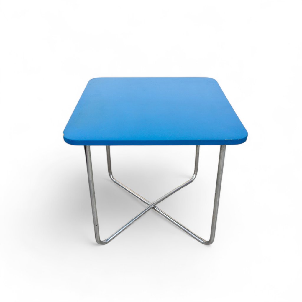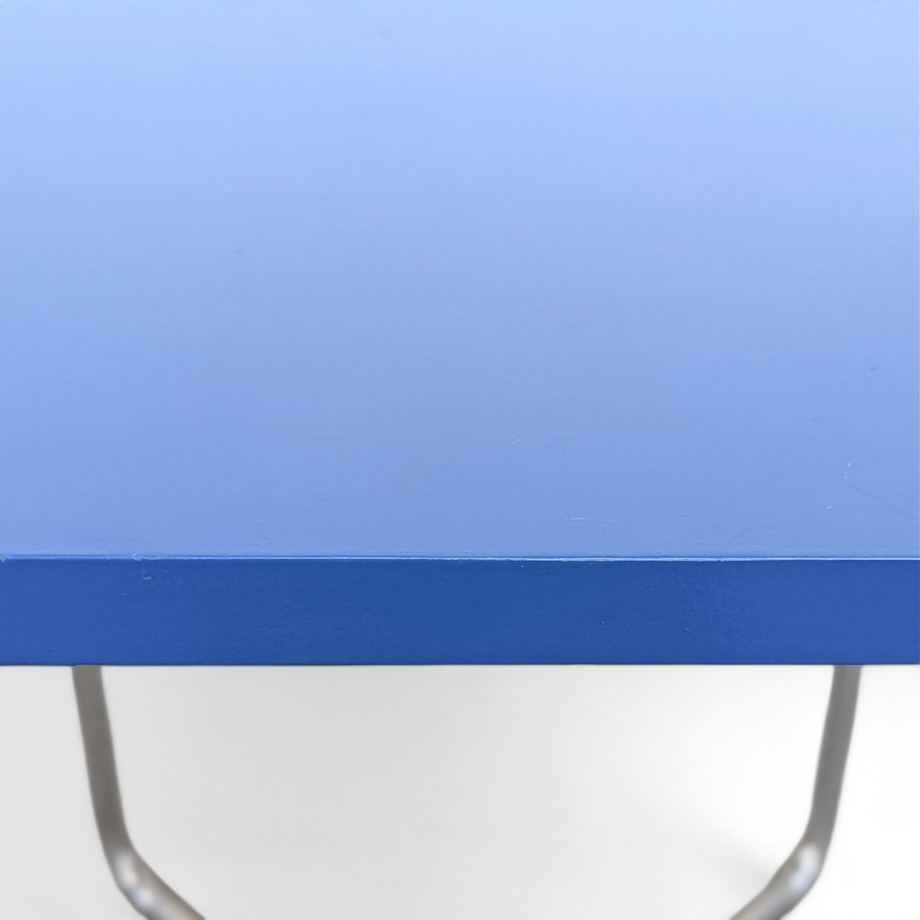 Functionalist tubular steel dining table, manufactured by Vichr & Co. in former Czechoslovakia during the 1930s. Crafted from chrome-plated tubular steel with blue lacquered wooden top, the table is in good original condition, showing some signs of wear and age. Structurally sound.