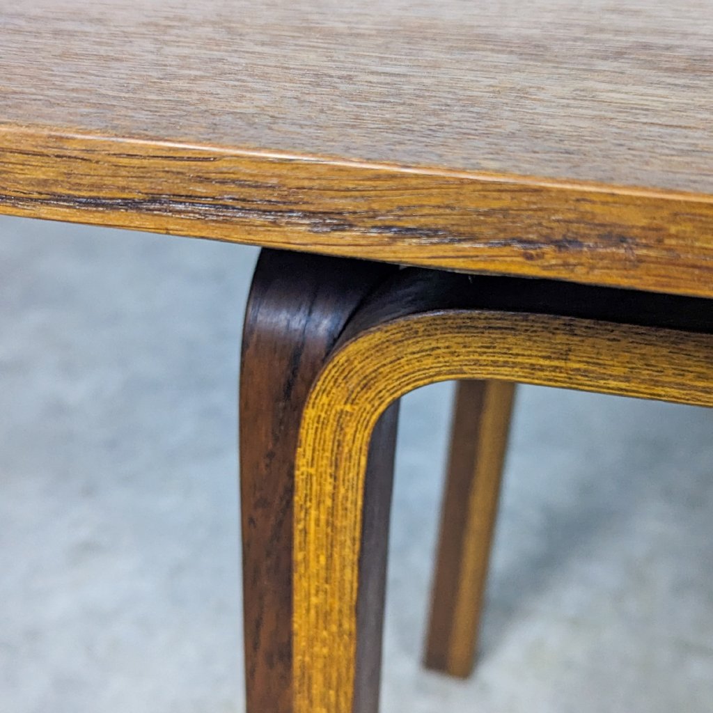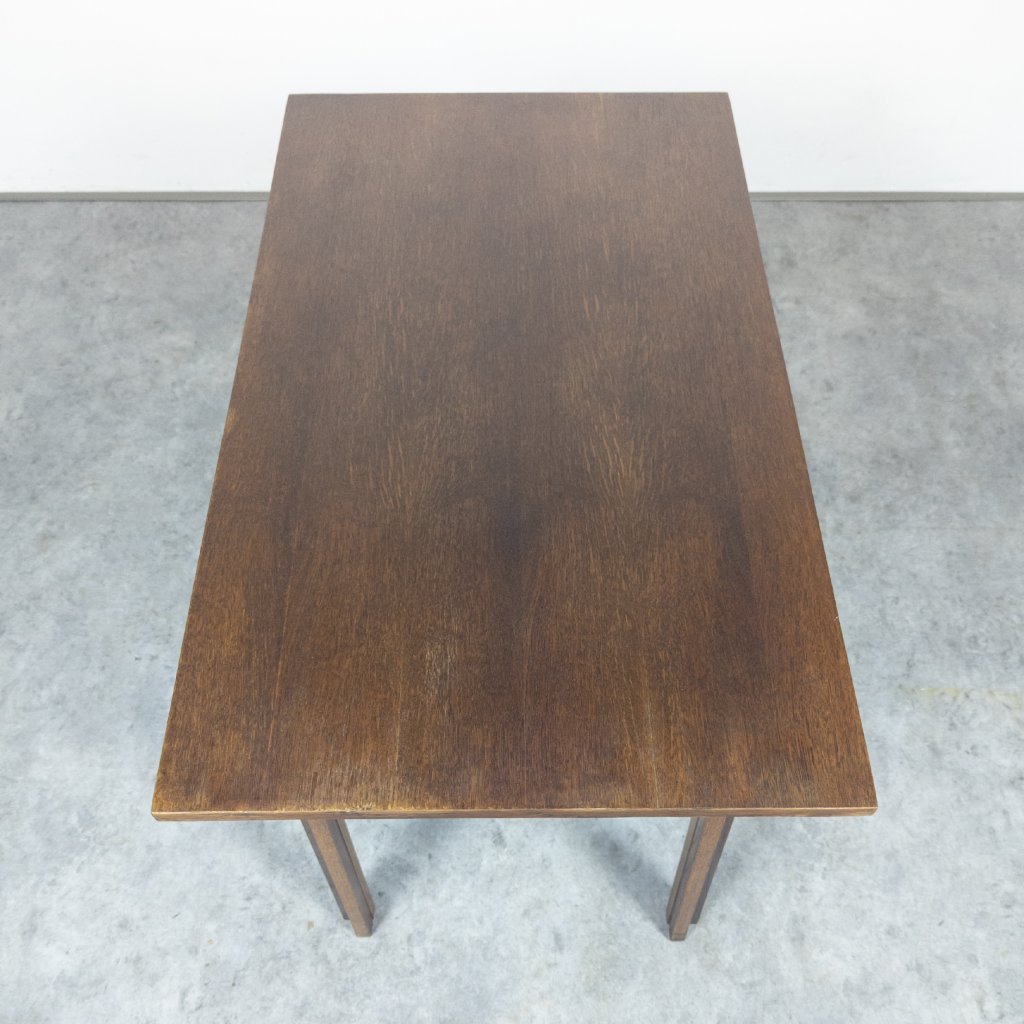 Made of solid oak wood. In good vintage condition with common traces of wear and age. Structurally sound. Height 60 cm, top 95 x 55 cm.