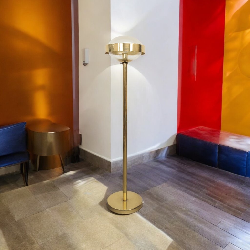 Designed by Jaroslav Bejvl, jr. Manufactured by Kamenický Šenov company which nowadays operates under the name Preciosa famous for its bohemia glass lightning. In very good original condition, fully functional. Height 150 cm, diameter 35 cm.