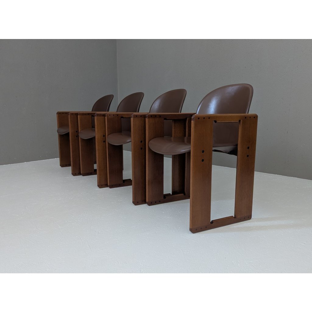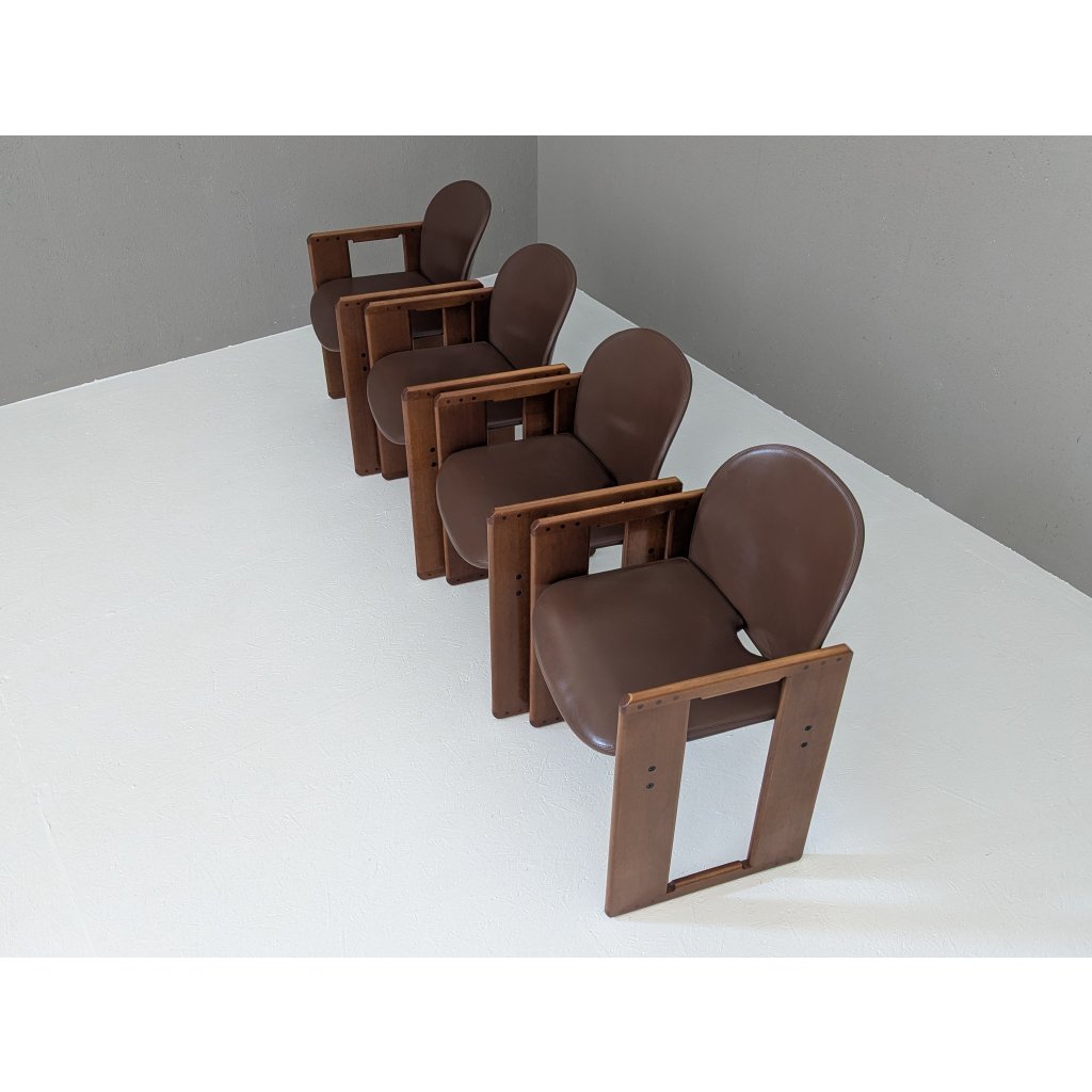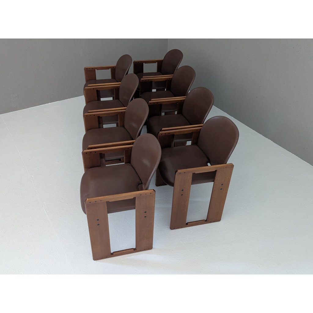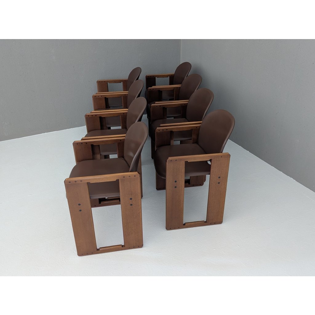 Designed in the early 1970s by the visionary duo Afra and Tobia Scarpa, the Dialogo chair is a masterclass in quiet complexity. This set of eight exemplifies the pair’s commitment to structural clarity and understated luxury — a dialogue between geometry, material, and human presence.