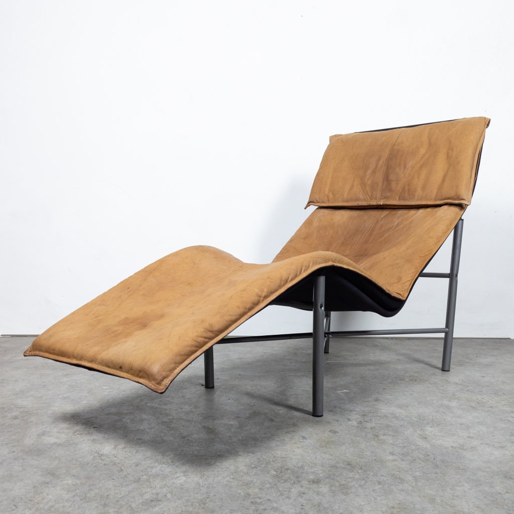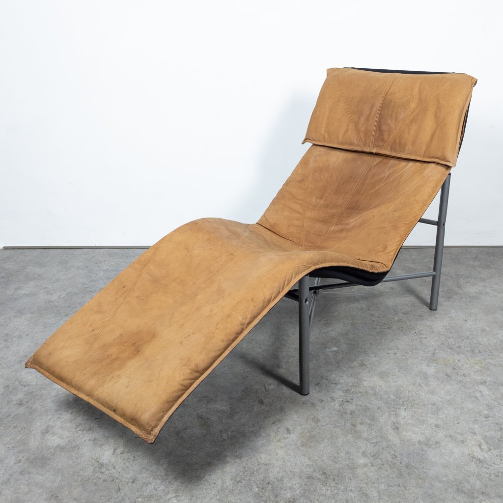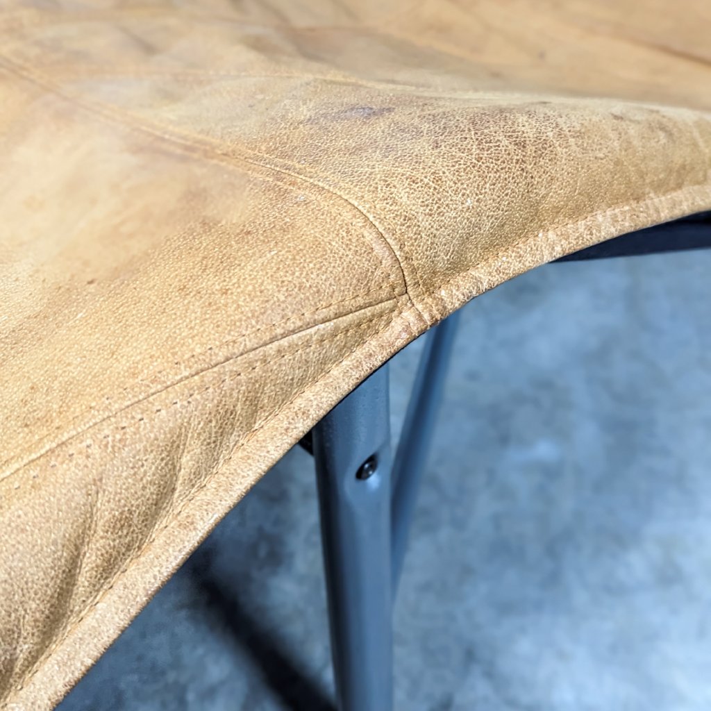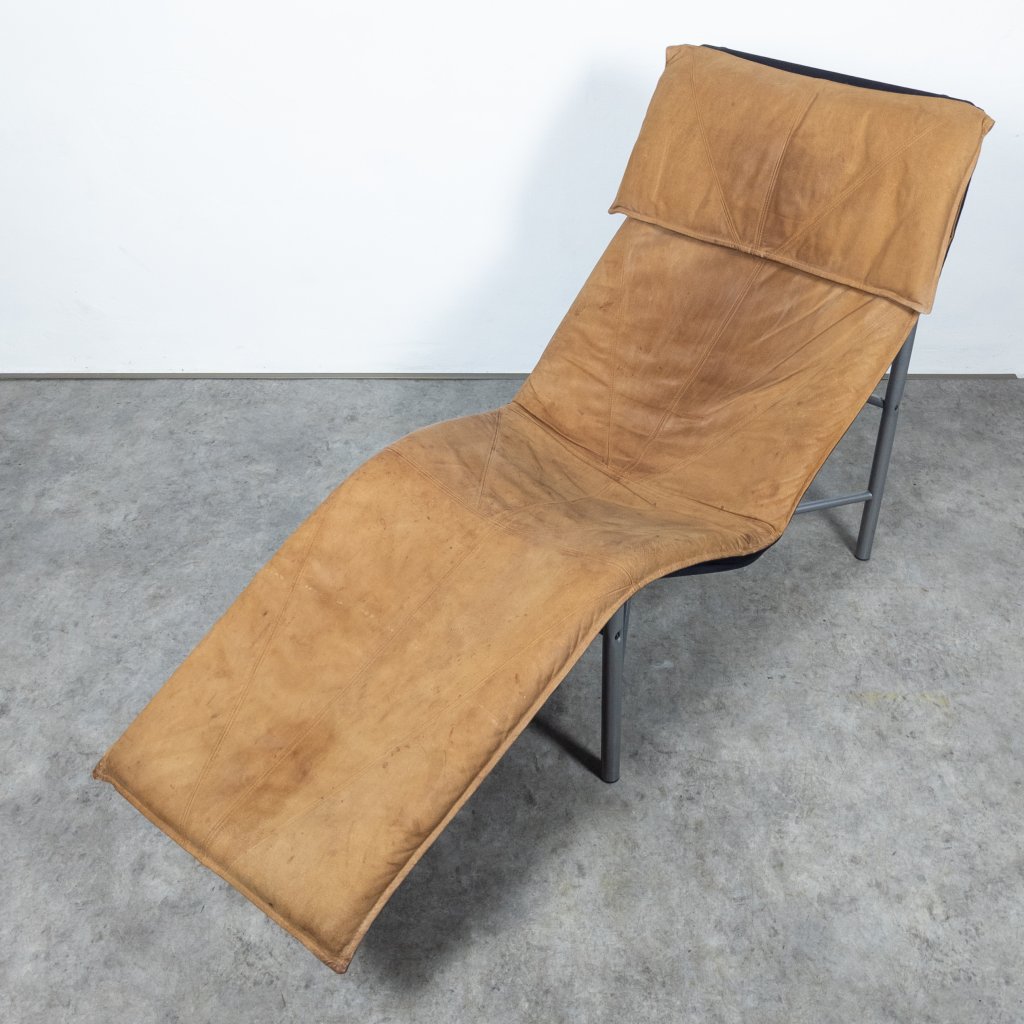 This chair offers exceptional comfort with its buffalo leather original upholstery. The lacquered tubular steel structure adds a modern touch. Overall, it's in very good condition for its age, with only minor wear. The leather seating remains in excellent shape with lovely patina. Length 160, width 70, seat height 32, height 94 cm.