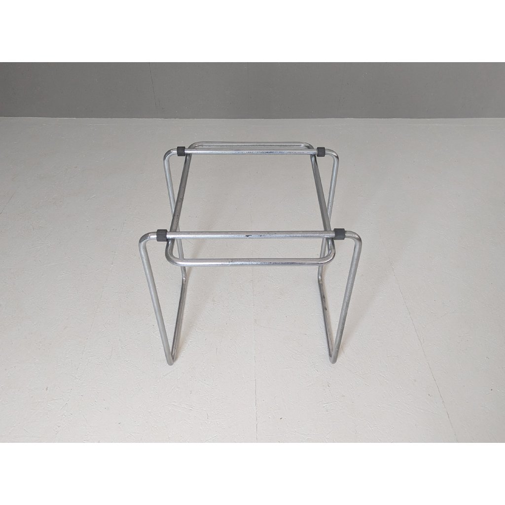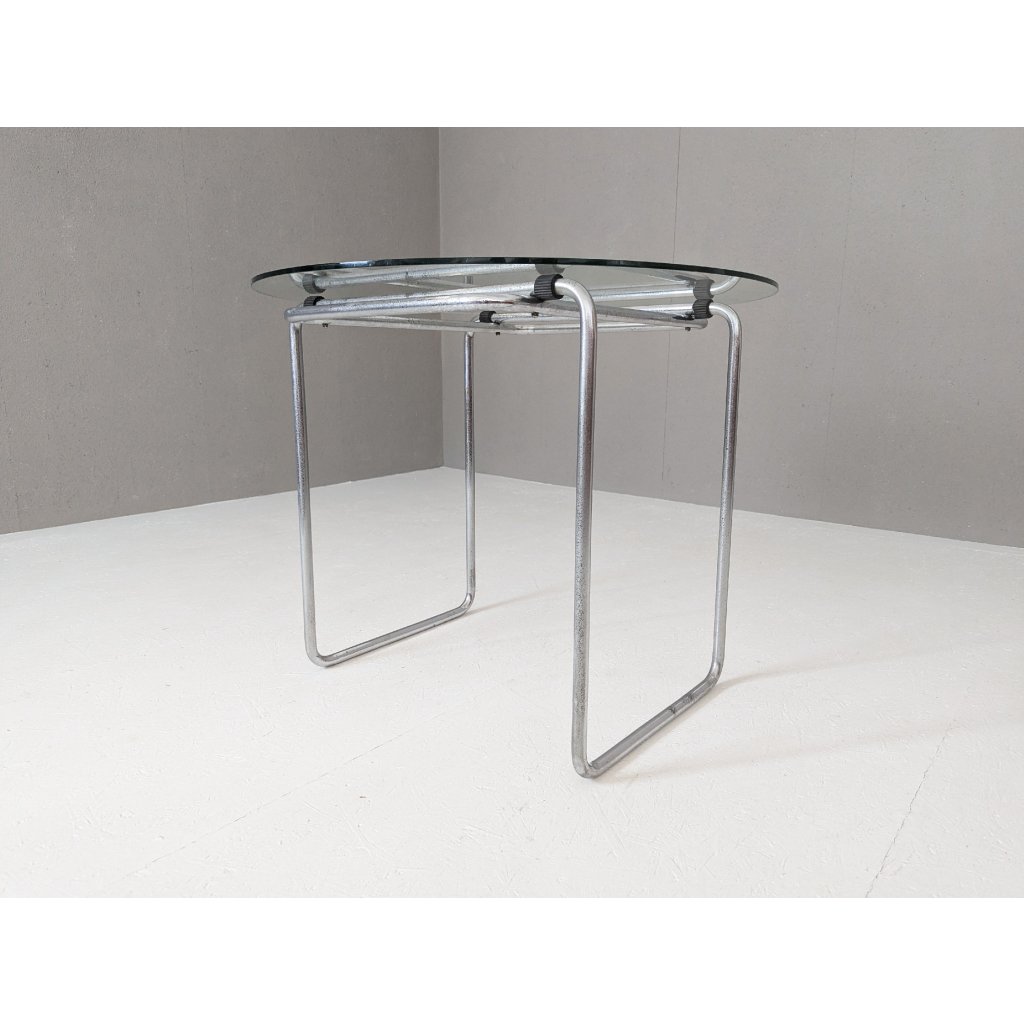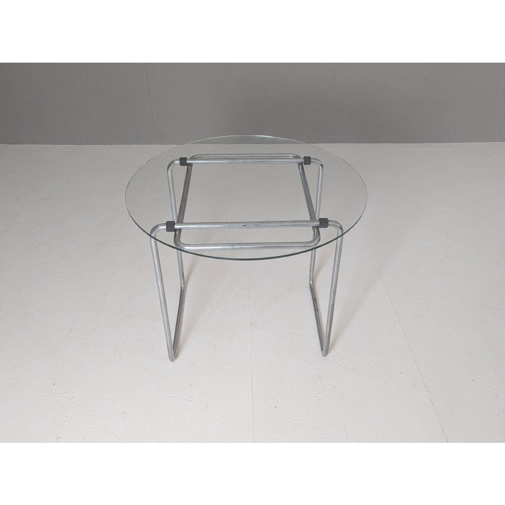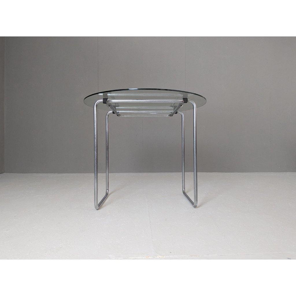 With its floating tubular steel frame and cantilevered form, the table reflects Breuer’s architectural training and his Bauhaus belief that furniture should be both rational and beautiful. The rectangular colorless glass tabletop, sitting on original black rubbers, with only minor scratches and couple of small chips at the edges shows age with quiet dignity, carrying the story of almost a century of use.