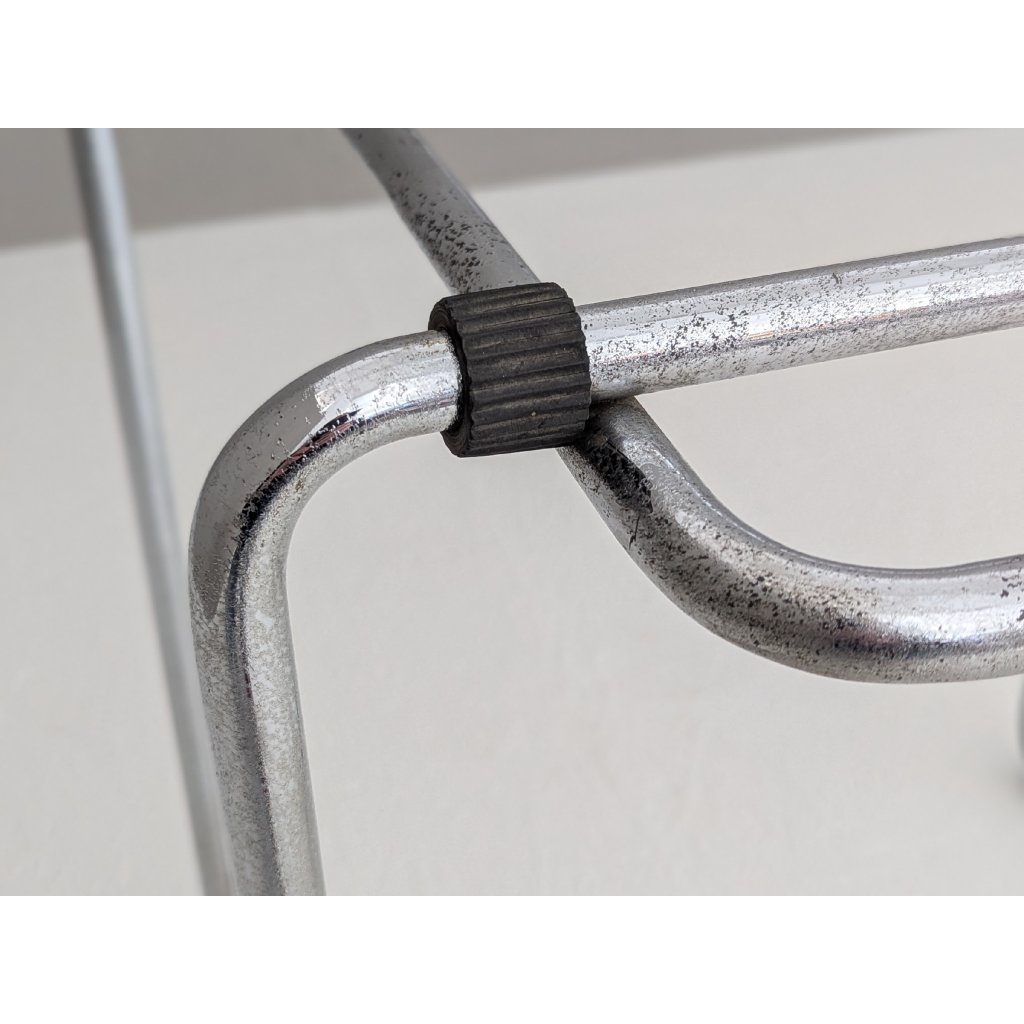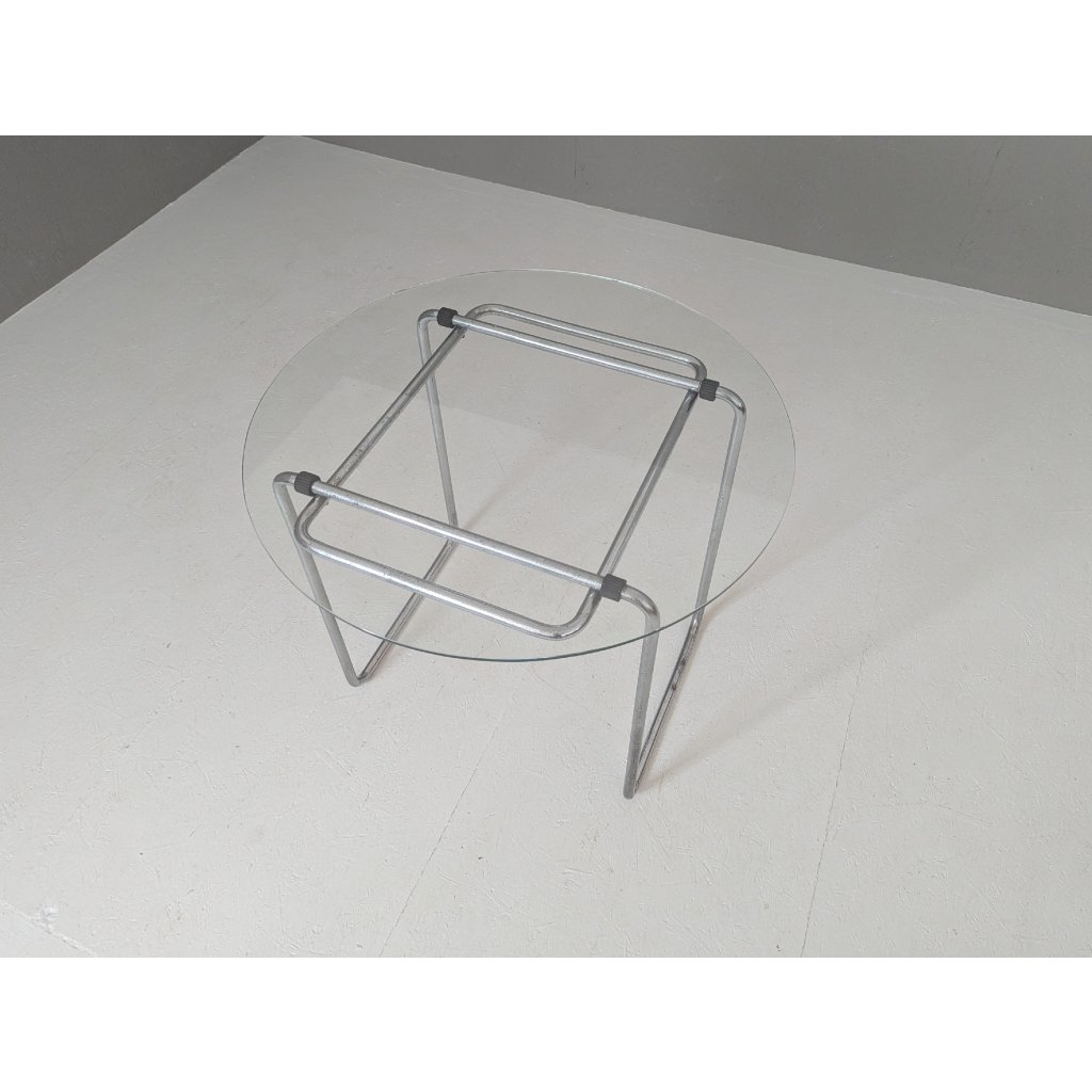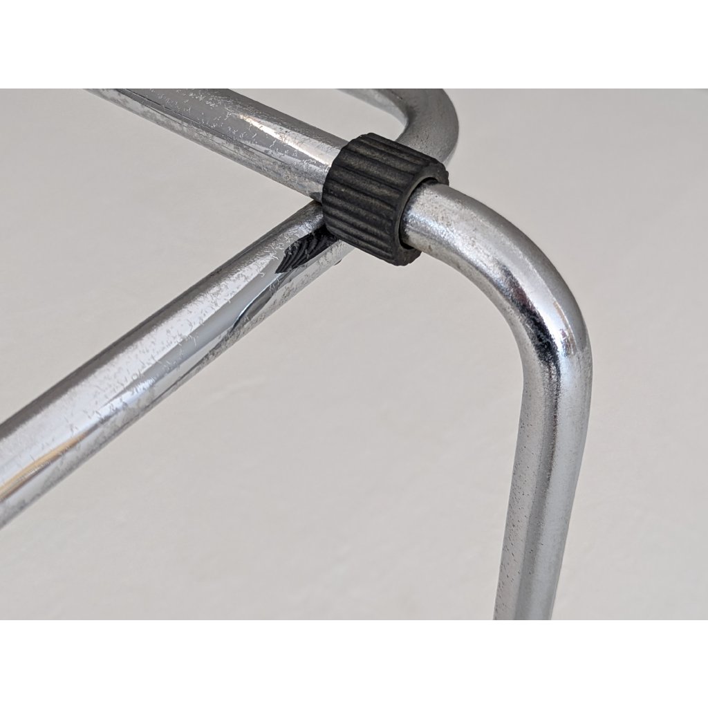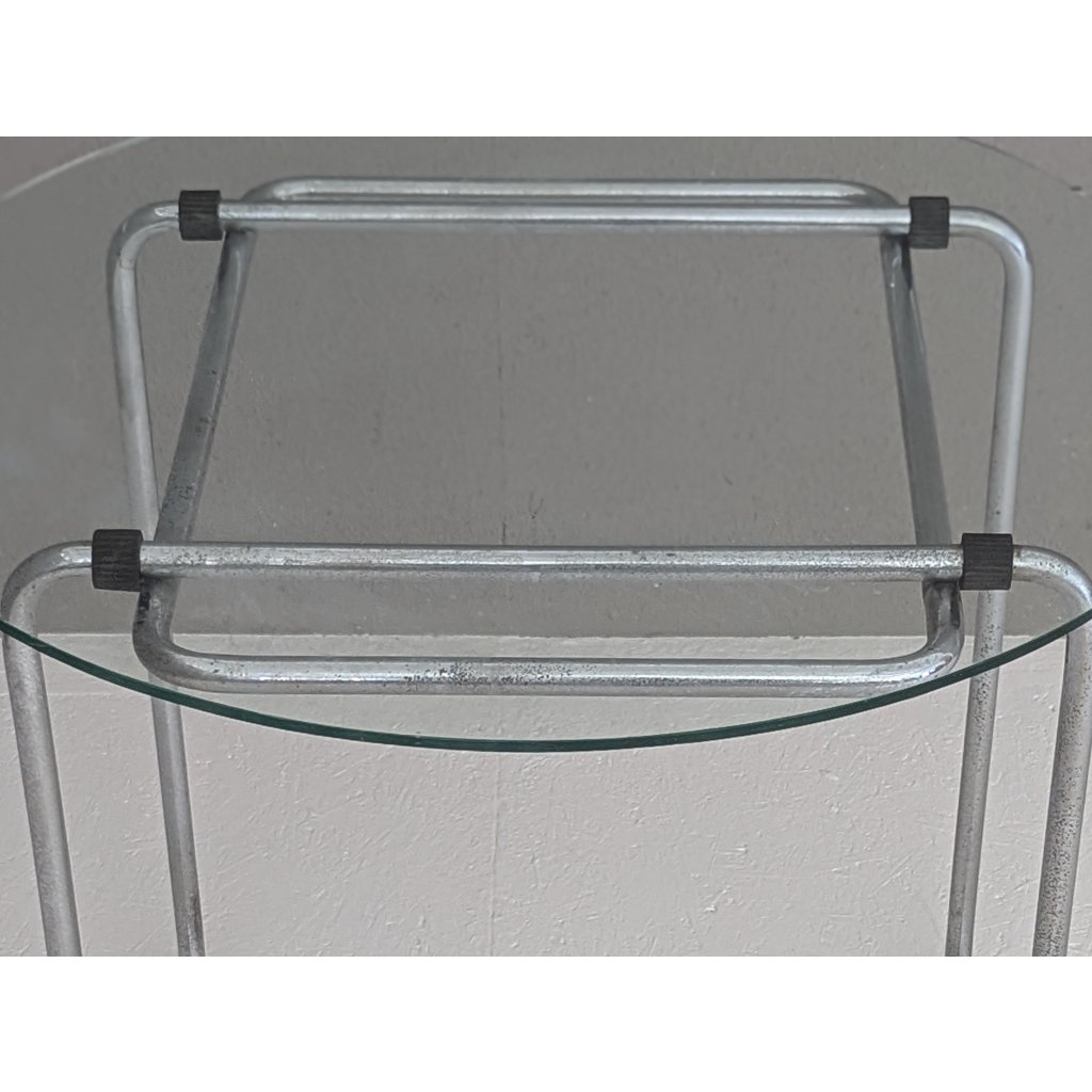 With its floating tubular steel frame and cantilevered form, the table reflects Breuer’s architectural training and his Bauhaus belief that furniture should be both rational and beautiful. The rectangular colorless glass tabletop, sitting on original black rubbers, with only minor scratches and couple of small chips at the edges shows age with quiet dignity, carrying the story of almost a century of use.