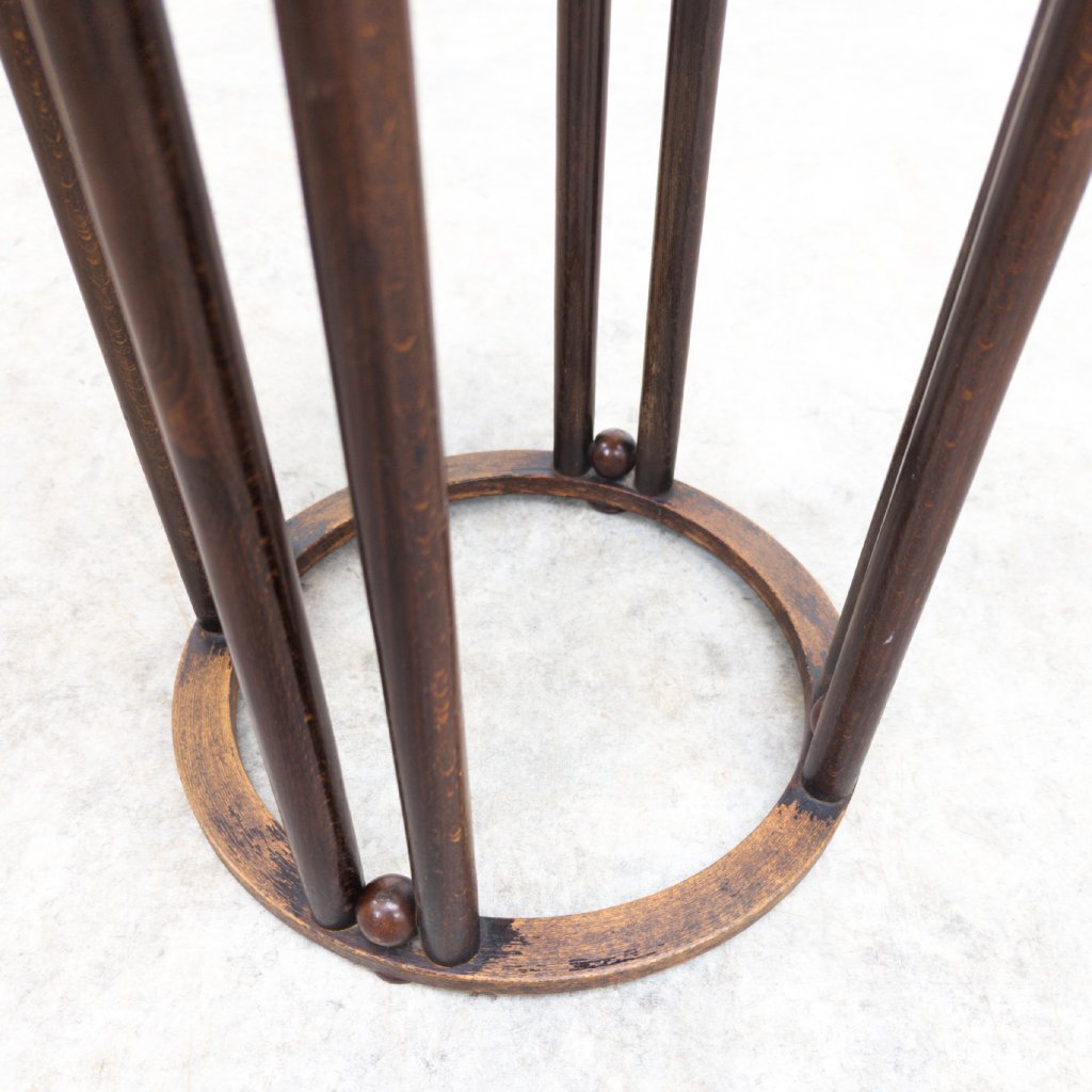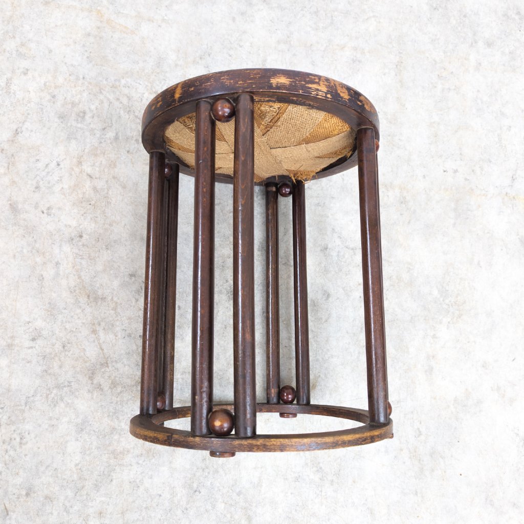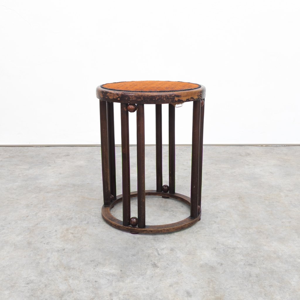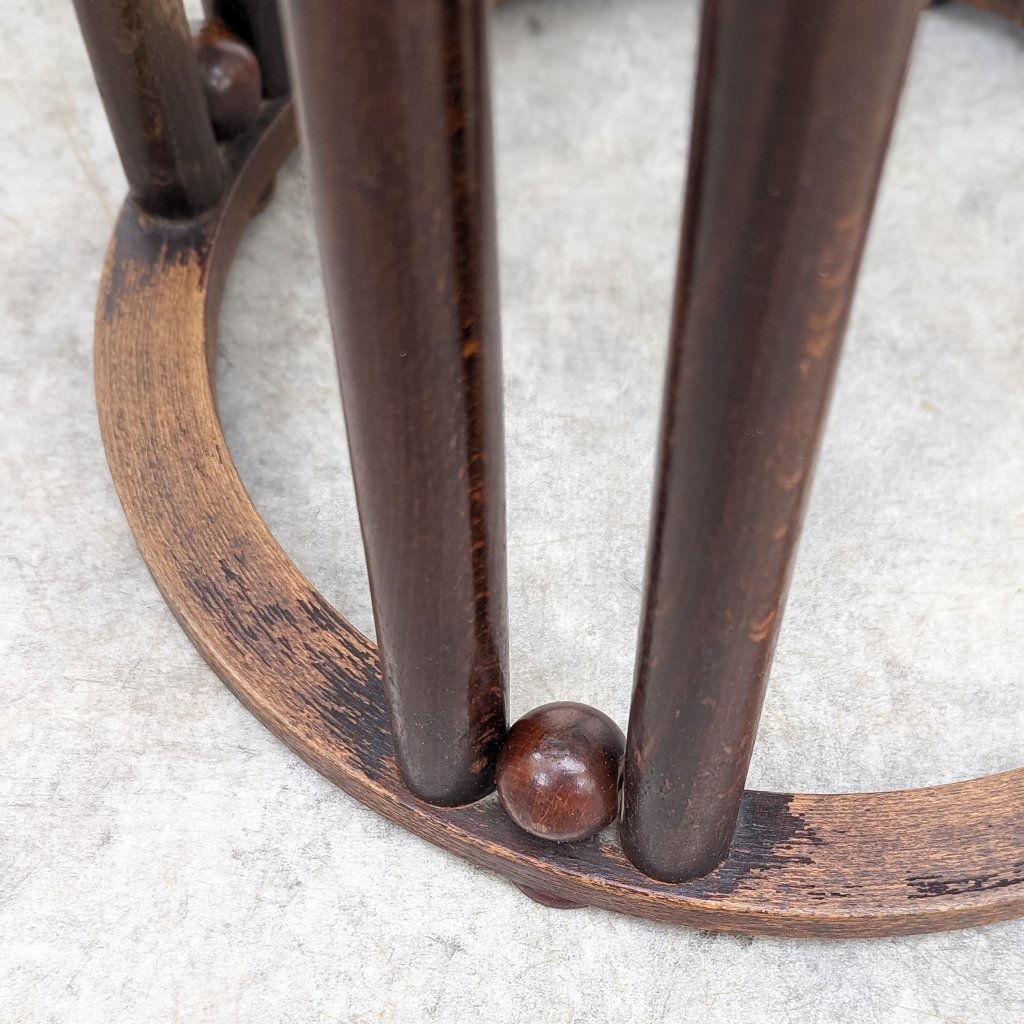 Executed by J&J Kohn, Vienna under catalogue number 728/S. In original condition with traces of wear and age on the wooden parts, fabric without damage. Labeled J&J Kohn. Height 46 cm, diameter 35 cm.