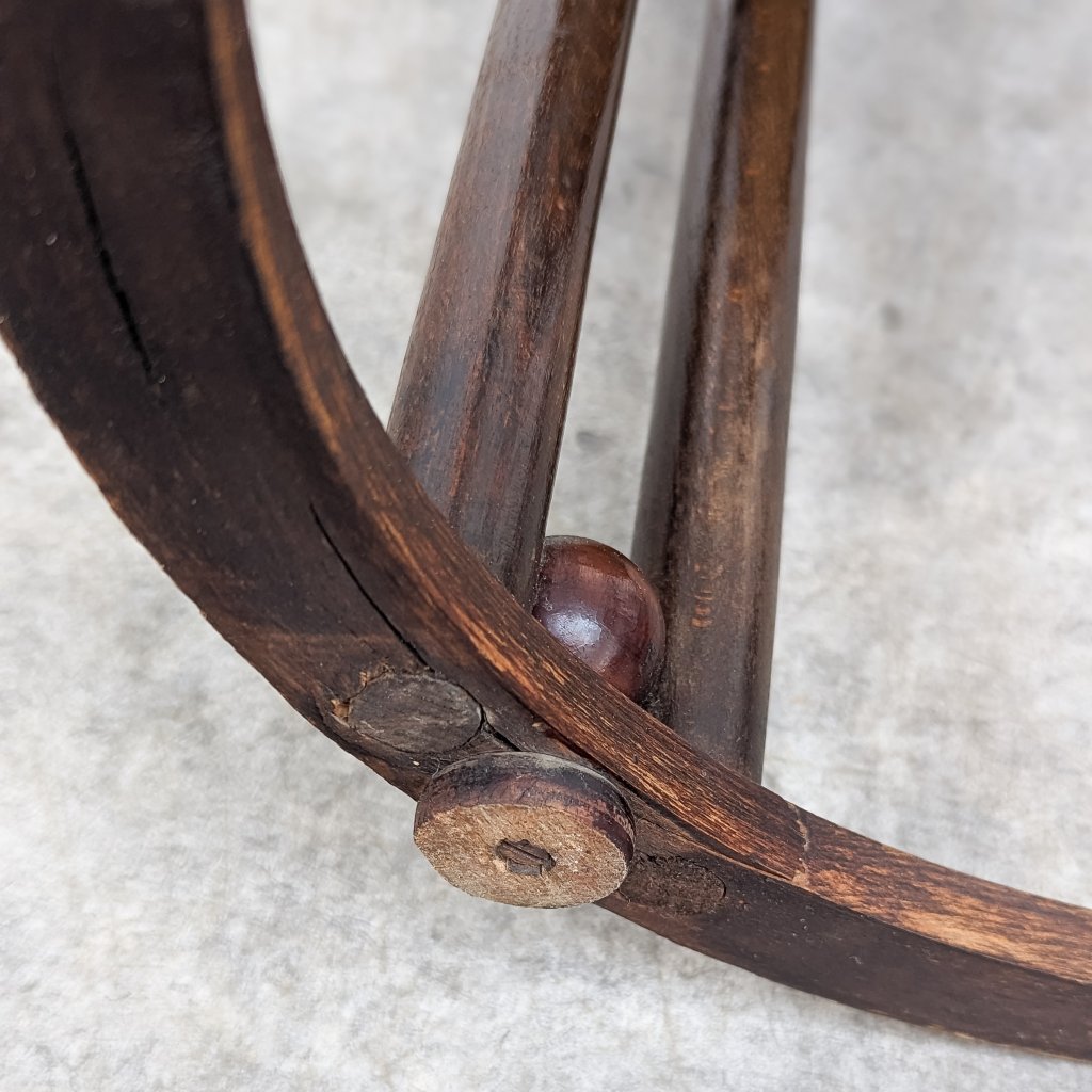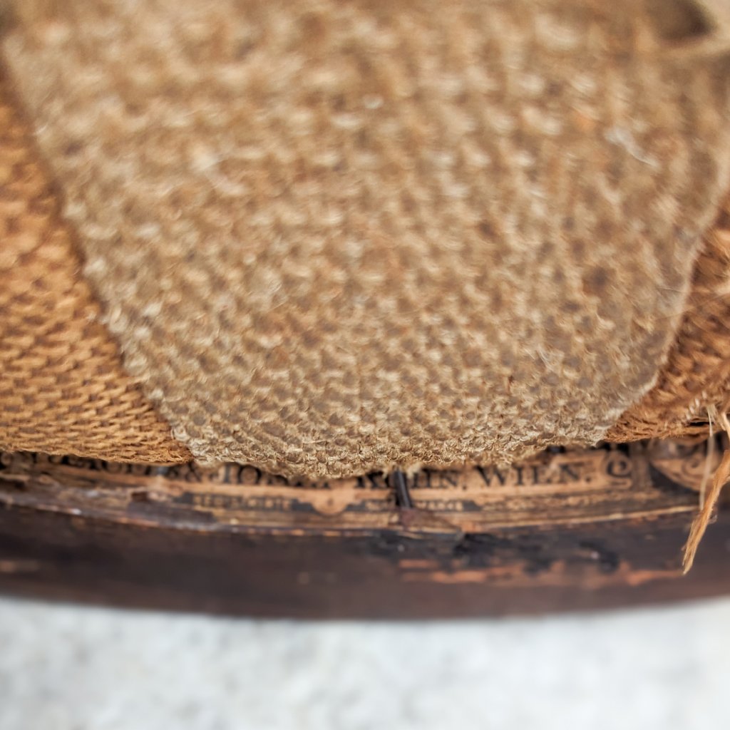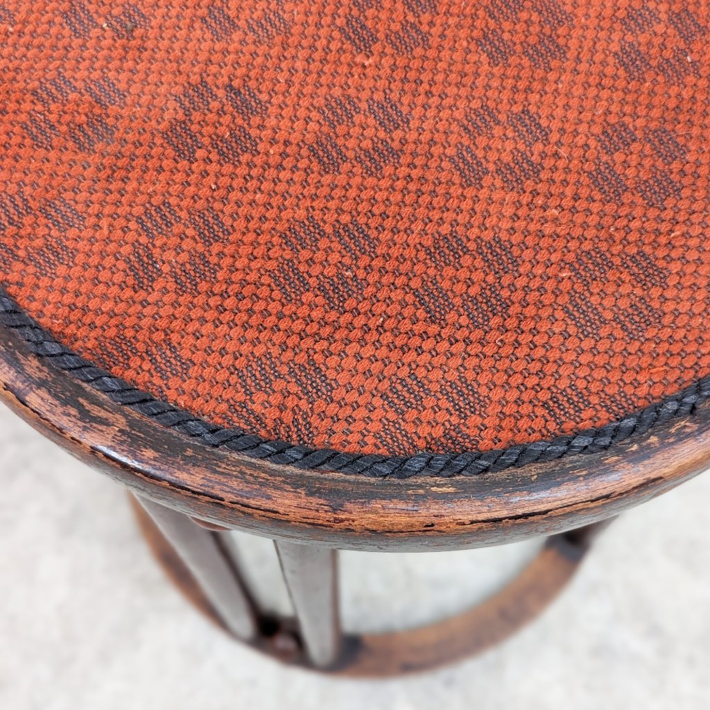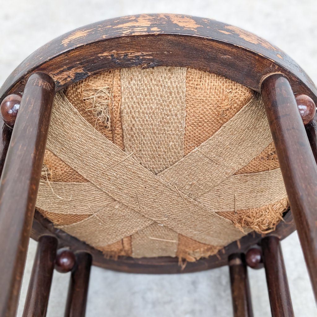 Executed by J&J Kohn, Vienna under catalogue number 728/S. In original condition with traces of wear and age on the wooden parts, fabric without damage. Labeled J&J Kohn. Height 46 cm, diameter 35 cm.