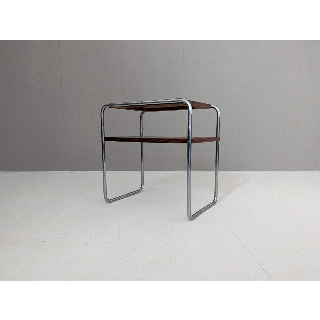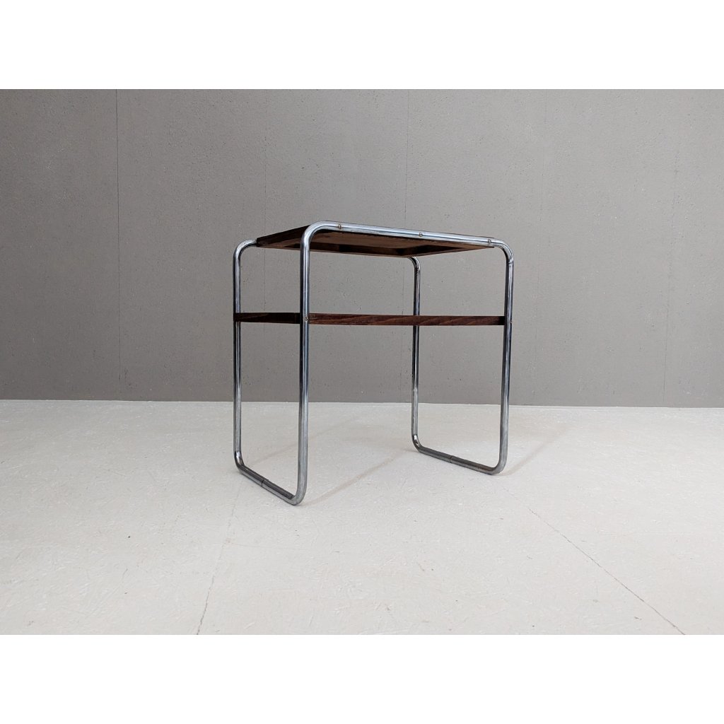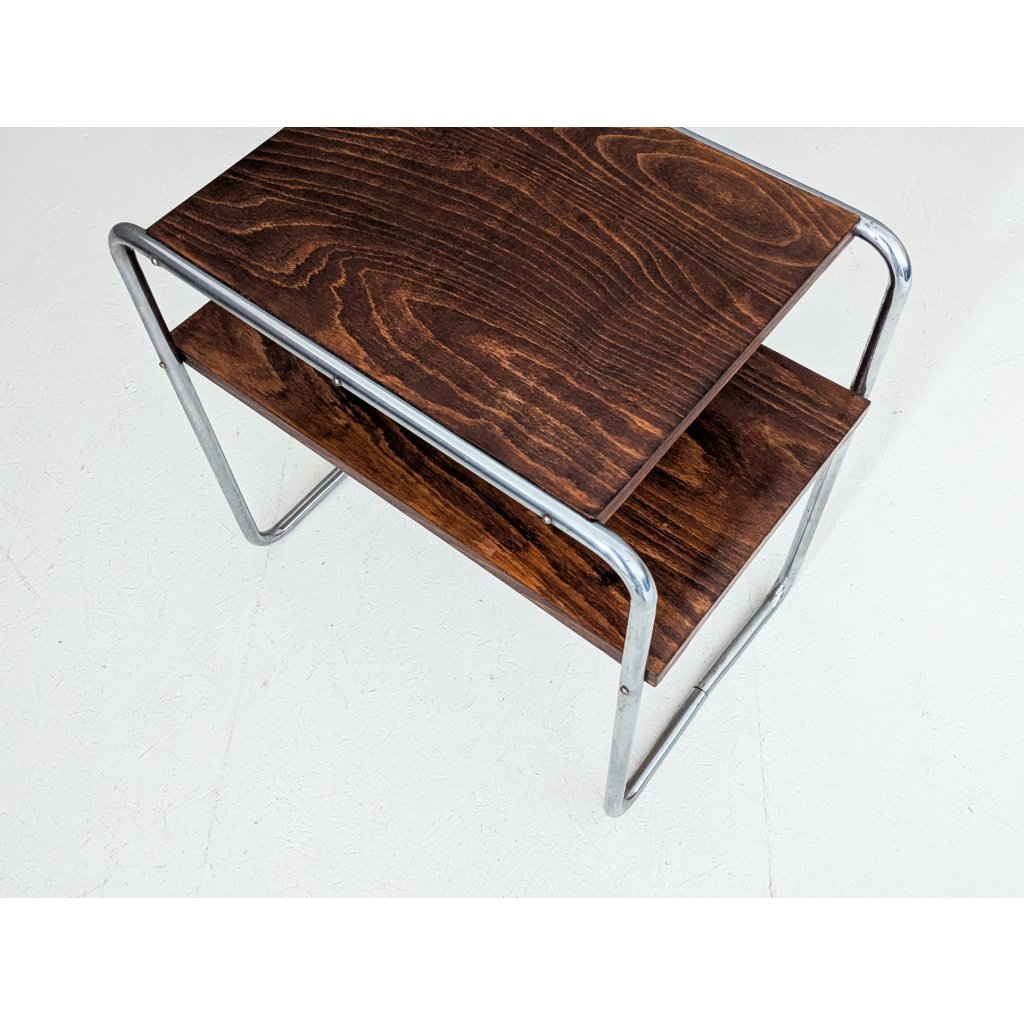 An early example of the Bauhaus side table, Model B 12, originally designed by Marcel Breuer in 1928 and manufactured around 1930 under Thonet licence by Robert Slezák in former Czechoslovakia.