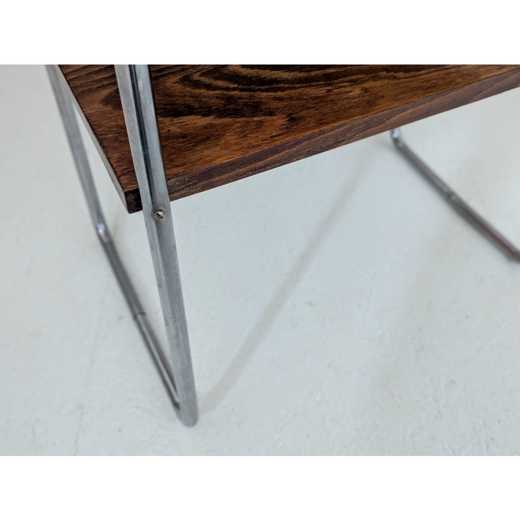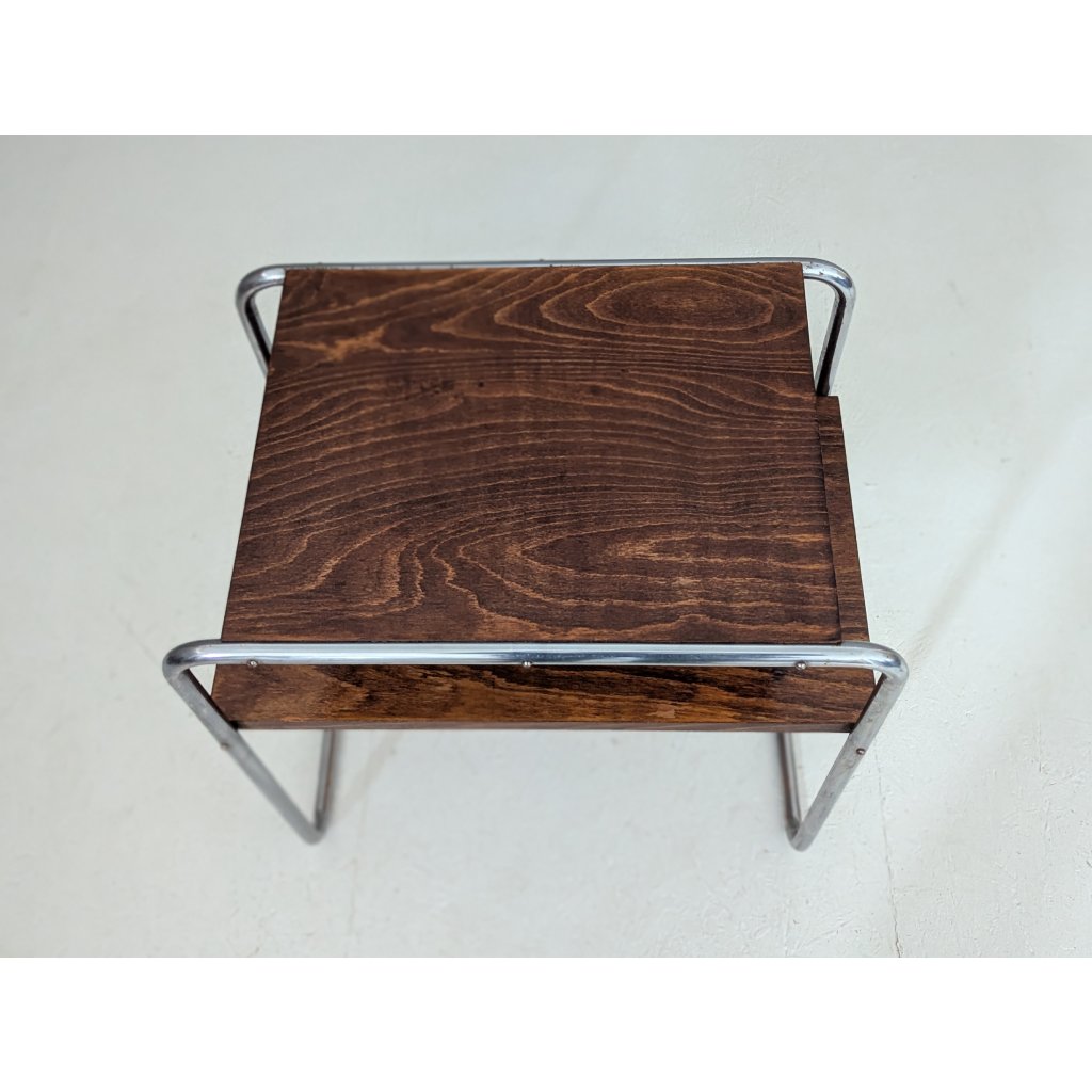 This version bears the unmistakable craftsmanship of Slezák’s workshop in Bystřice pod Hostýnem—a key Czechoslovak producer of modernist tubular steel furniture in the interwar period. Its minimal yet bold silhouette works equally well as a side table, nightstand, or display table in modern and vintage-inspired interiors alike.