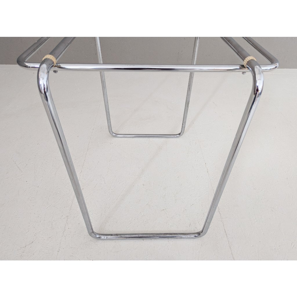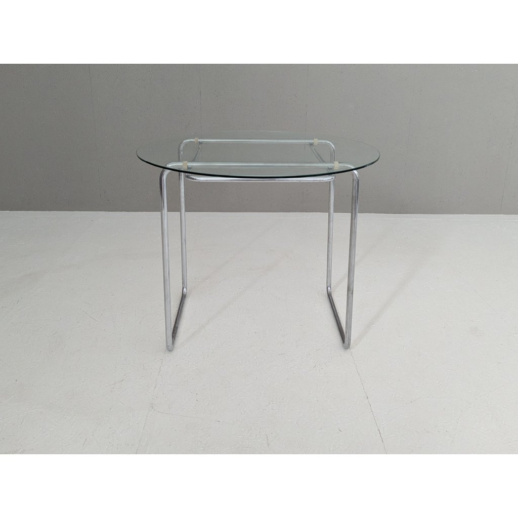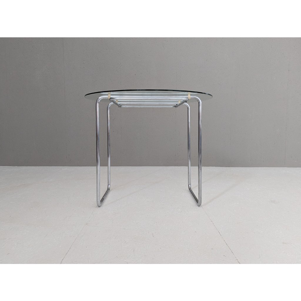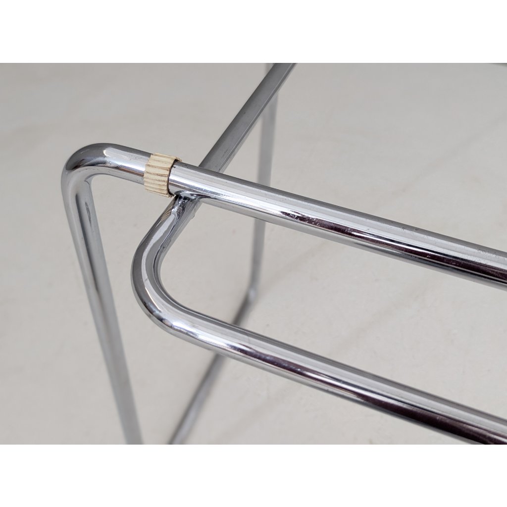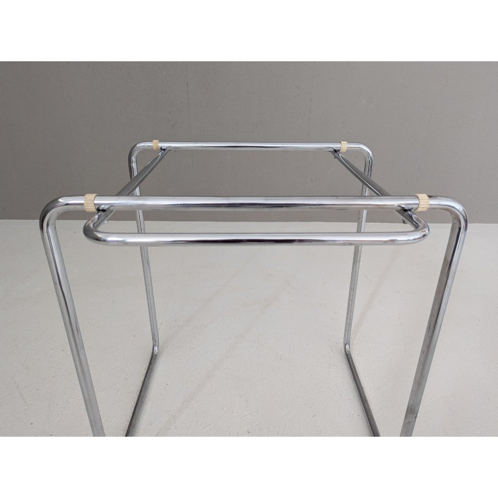 With its floating tubular steel frame and cantilevered form, the table reflects Breuer’s architectural training and his Bauhaus belief that furniture should be both rational and beautiful. The rectangular colorless glass tabletop, sitting on original black rubbers, with only minor scratches and couple of small chips at the edges shows age with quiet dignity, carrying the story of almost a century of use.