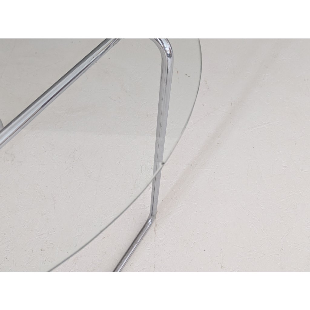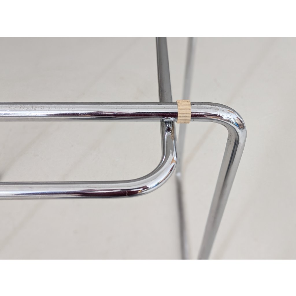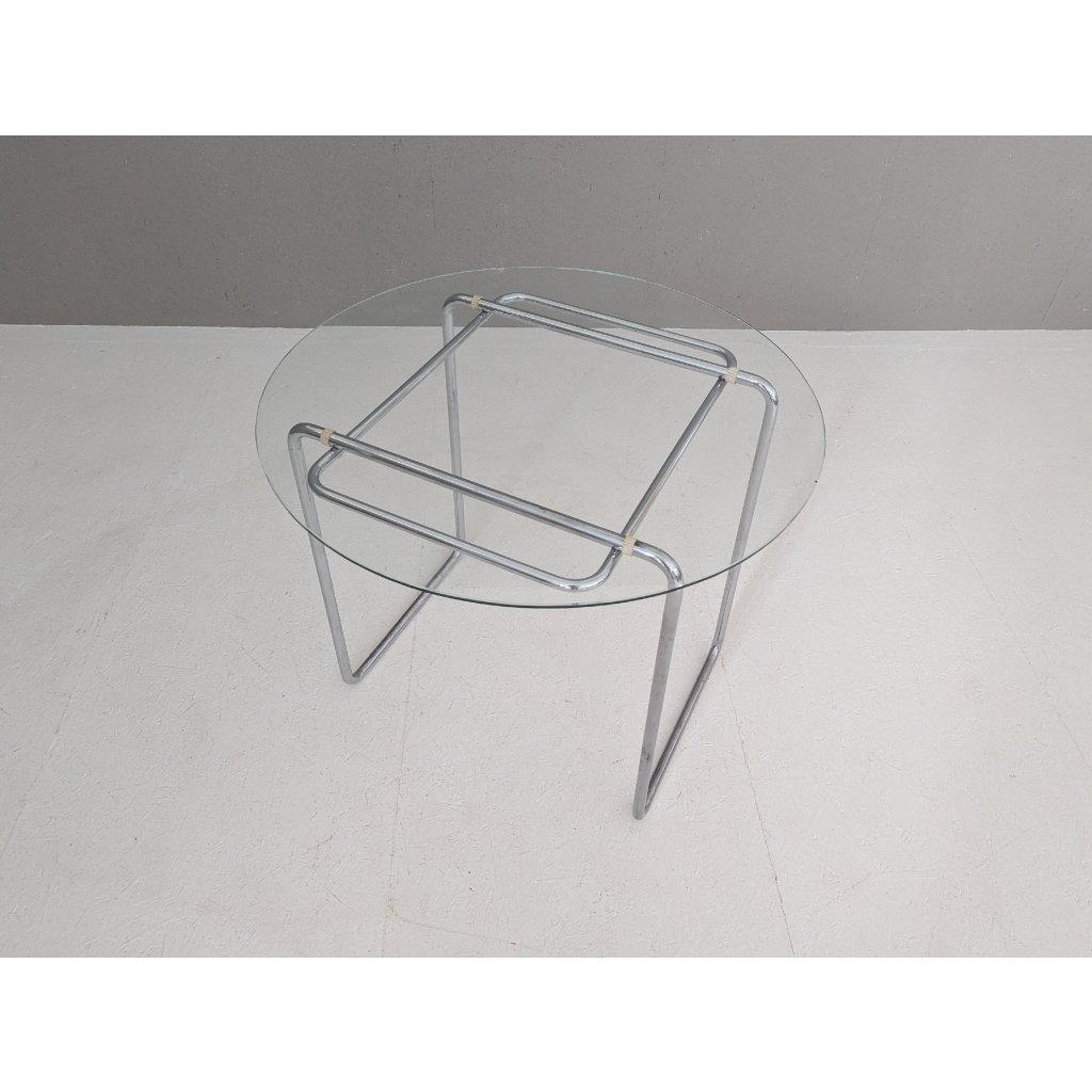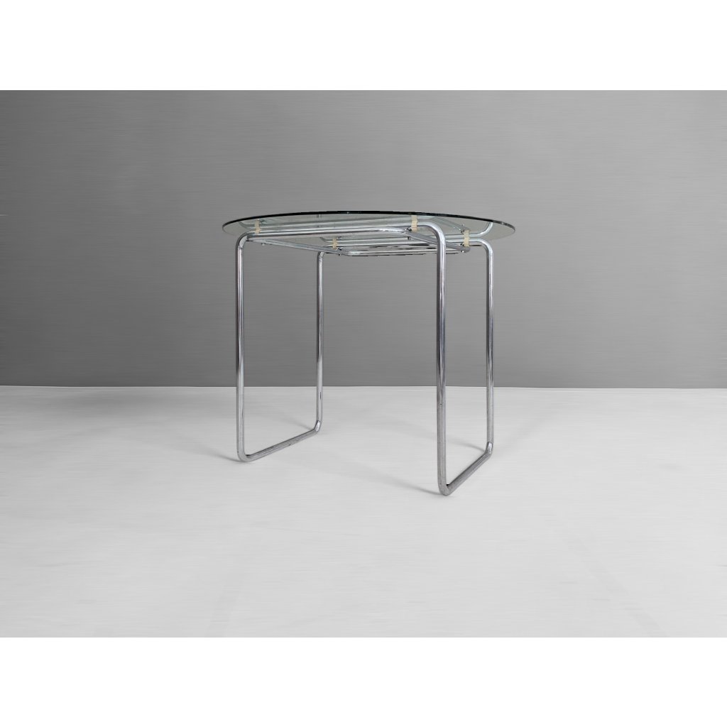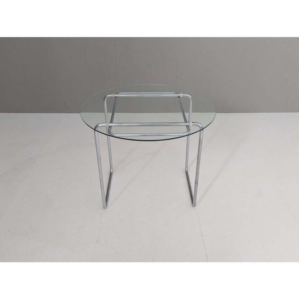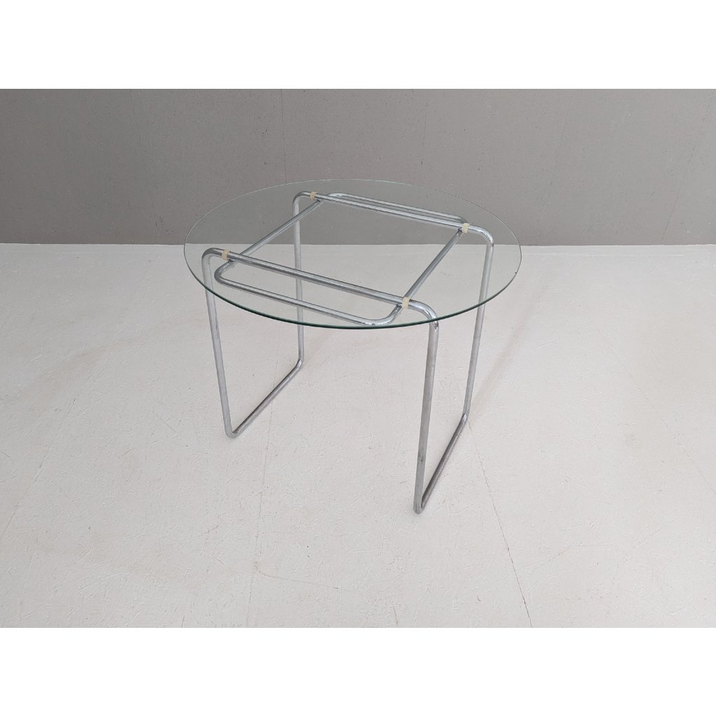 With its floating tubular steel frame and cantilevered form, the table reflects Breuer’s architectural training and his Bauhaus belief that furniture should be both rational and beautiful. The rectangular colorless glass tabletop, sitting on original black rubbers, with only minor scratches and couple of small chips at the edges shows age with quiet dignity, carrying the story of almost a century of use.